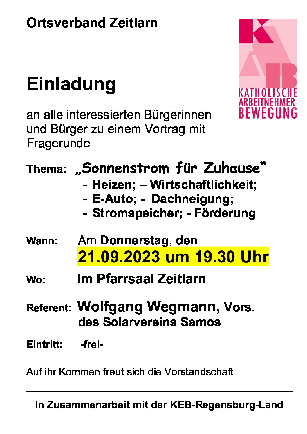EINLADUNG : Im Vortrag und den ausgedehnten Fragerunden geht es Rund um das Errichten und dem Betrieb von Solarstromanlagen auf Privatgebäuden. Es sind keine technischen Grundkenntnisse erforderlich.