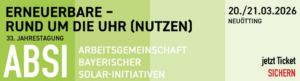 - 100% Erneuerbar, ABSI, Batteriespeicher, Bayern, Bayrische Solarinitiativen, EEG 2025, Elektromobilität, Emobilität, Energiewende, Erfahrung mit PV-Anlage, Erneuerbare Energien, Photovoltaik, Solare eMobilität, Solarinitiativen, Solarstrom, Solarverband Bayern e.V., Solarwärme, Steckbare Speicher, Stromspeicher
